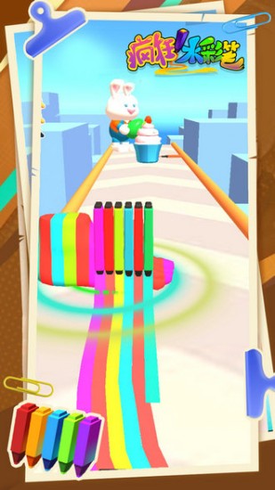 1、跑酷的对象是一只水彩笔,有着五彩缤纷的色彩
