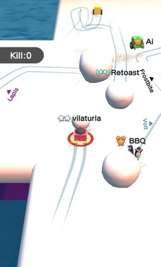 3、在战场中通过拖动操作移动角色,滚雪球在移动时逐渐增加