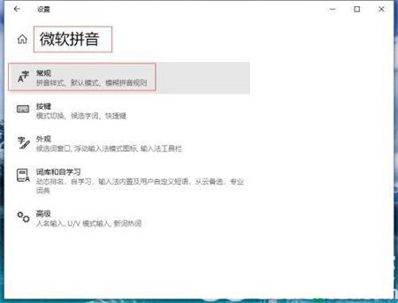 4、开启“微软拼音字母”点击“常规”。