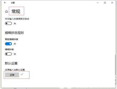 5、开启“常规”寻找默认点击“还原”把电脑输入法复原为默认,对号表明取得成功。