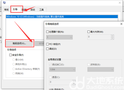 2、点击【引导】,点击【高级选项】。
