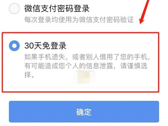 3、在三种默认登录方式中选择【30天免登陆】,点击确认即可。