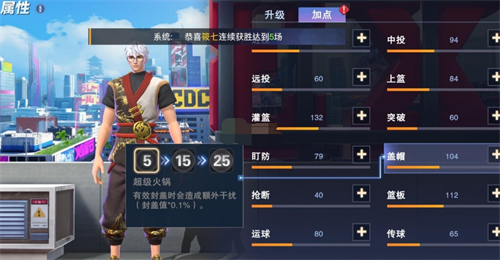 1、夏禾加点建议:主点篮板,中投,盯防,灌篮,或不要灌篮点盖帽。