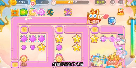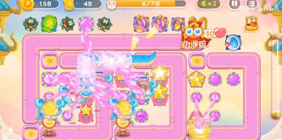 1、开局在右下角位置放魔法球,先清理上方到基于,清完放魔法球,继续把z7uoce桃子打了,桃子打了放星星塔,继续往左清理;