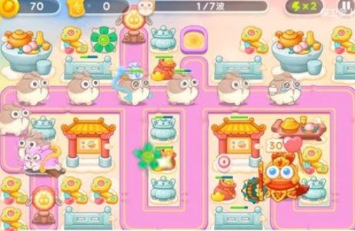1、今天开局我们先造多重箭,锁定钱袋输出,风扇升二级,打掉钱袋后升三级,锁定香炉,粉色兔子出现后立刻切过去打。