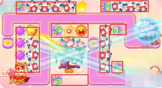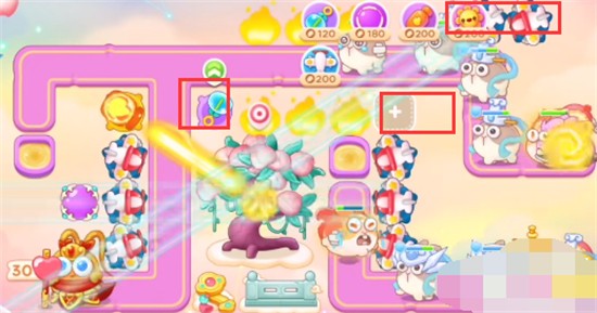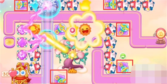 1、本关能够使用的炮塔是:泡泡塔、魔法球、火瓶、太阳、飞机,这一关我们主要使用飞机。