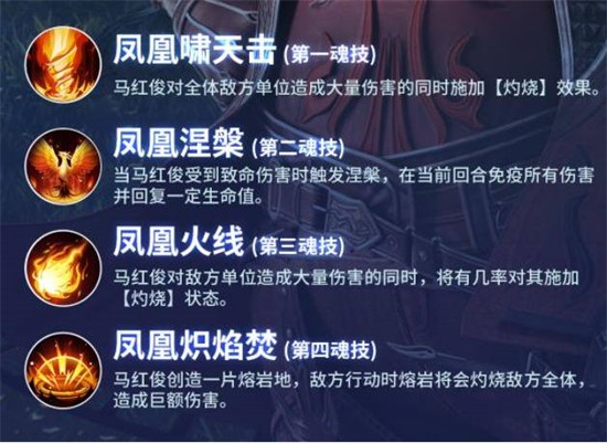 2.魂环解析:1魂技全队附加灼烧,且附加血量上限百分比伤害,2魂技获取伤害加成,50层的话能达到100%点伤害加成,3魂技敌方有灼烧则伤害增加,4魂技附加全队灼烧和火种。