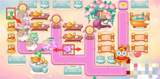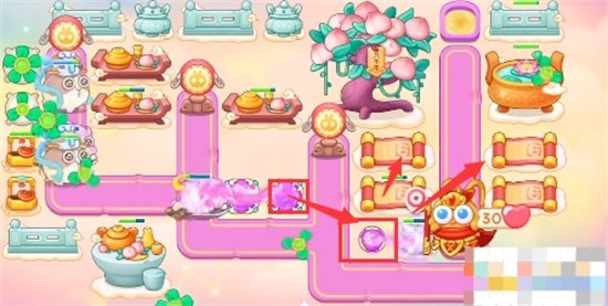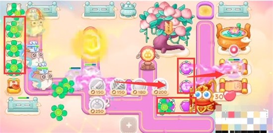 5、打完仙女之后补齐输出打蟠桃树,可以在拐角处放置毒针提供减速。