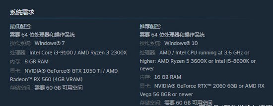 显卡:NVIDIA GeForce RTX 2060 6GB or AMD RX Vega 56 8GB或更新