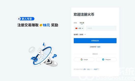 1、打开Huobi官网【点击立即进入】(没有账号的投资者可以点此注册账号进行交易),选择手机号注册,输入手机号,点击“获取验证码”