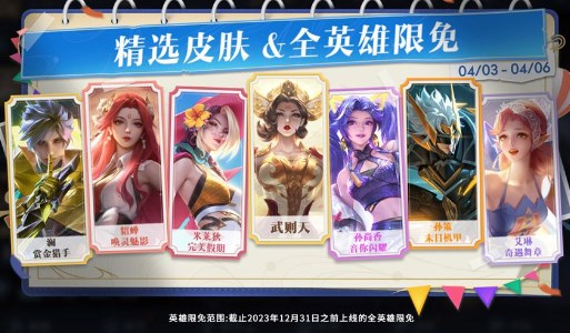 规则:4月3日及清明小长假期间,玩家可免费使用限免英雄与皮肤参与对局等玩法。