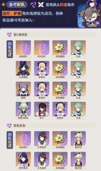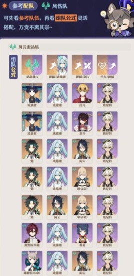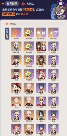 未展示角色可根据组队公式、后面的角色定位表来对号入座