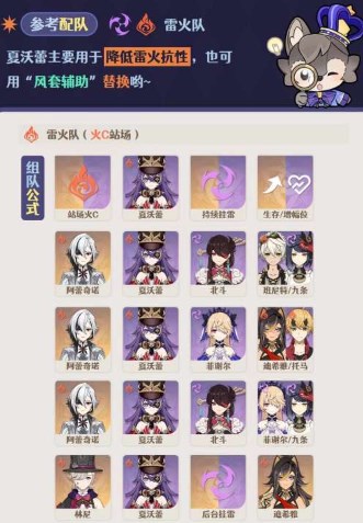 夏沃蕾主要用于降低雷火抗性,也可用“风套辅助”替换