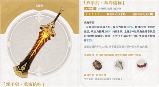 1、小编比较推荐玩家获取“苇海信标”,属于5星双手剑。