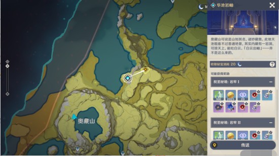 3.传送秘境[华池岩岫],往地图的东北方,前往山顶。