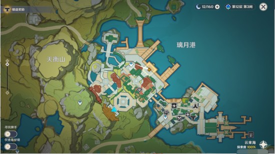 7.传送琥牢山图中锚点,往地图的西南方走,传送图中璃月港锚点,往地图的东方走。