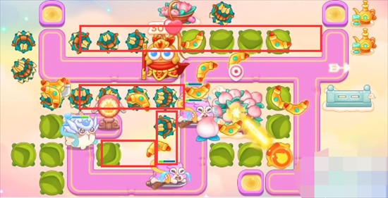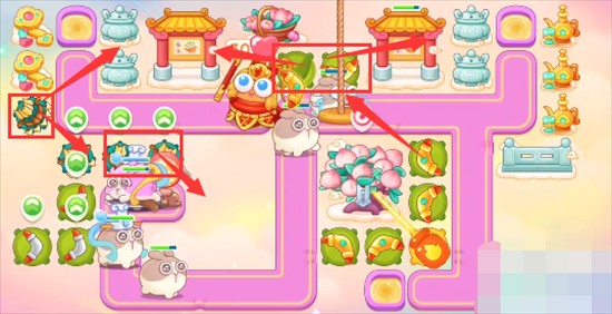 1、本关能够使用的炮塔是:火瓶、多重箭、便便、回旋镖,这一关我们需要使用多重箭和回旋镖玩。