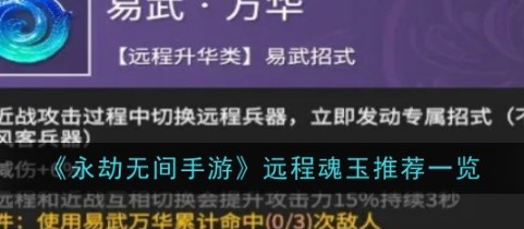 永劫无间手游远程魂玉带什么好?永劫无间手游是一款多人在线组队竞技的动作吃鸡游戏,在游戏中玩家们在进行战斗时可以选择不同的英雄角色出场,在游戏中玩家们可以通过佩戴组合合适的魂玉来提升角色的战斗能力,在游戏中根据角色的攻击类型不同还可以选择不同的魂玉搭配组合,本次小编要为大家分享的就是游戏中的远程魂玉佩戴搭配推荐。