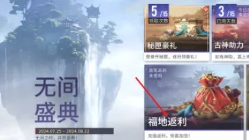 第二步:进入无间盛典页面,点击下方的【福地返利】活动。