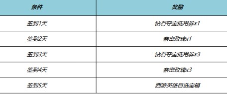 活动期间,累计签到送西游英雄自选宝箱(打开后可选择以下奖励之一:孙悟空、猪八戒、公孙离、甄姬、英雄碎片x5)、亲密度道具等好礼!