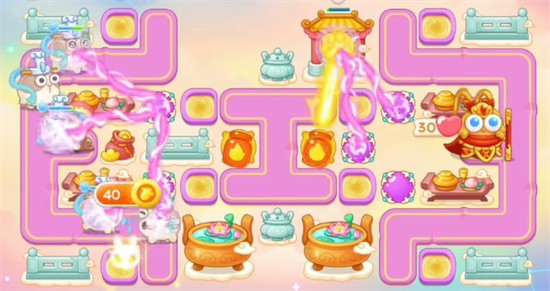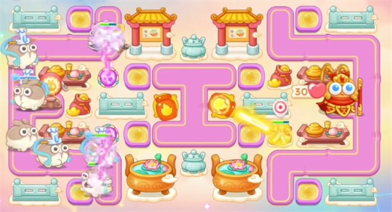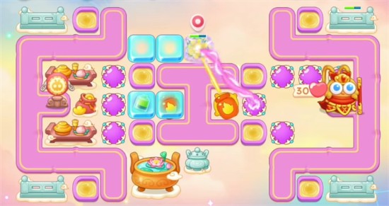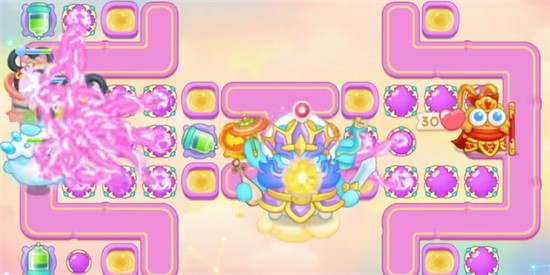 1、建立两个魔法球,打右边篮子,篮子打掉之后,空出位置建立火炮,继续打钱袋,钱袋打掉之后,建立火炮,继续打钱袋。