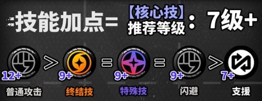 角色通过冰附魔后普攻进行输出,伤害整体占比较大,因此优先将普攻等级点高,其次是终结技与连携技,特殊技作为输出推荐在普攻与终结技点满后再去点满。