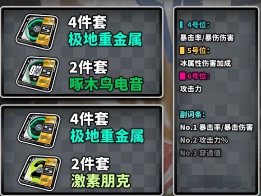 推荐极地重金属四件套+啄木鸟电音两件套,这套组合很适合冰队,有额外的提升,前期过渡推荐极地两件套+河豚两件套+啄木鸟两件套。
