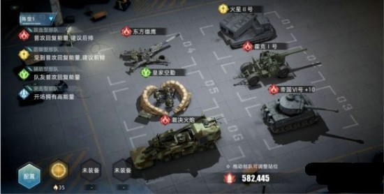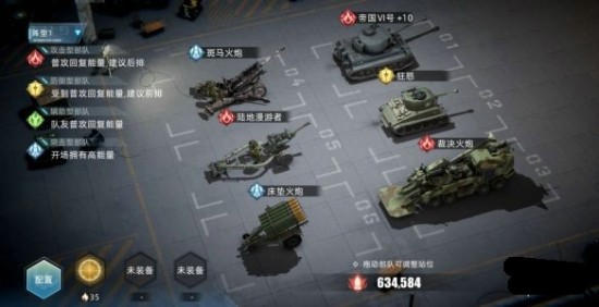 帝国Ⅵ号和裁决火炮两支部队的搭配算是强强联合,高爆发加高斩杀,是足以让敌人闻风丧胆的组合。帝国Ⅵ号主动技能【怒火攒射】可对敌方一列造成高额穿甲伤害,被动技能【破军强袭】和【无畏冲锋】都能增加一定比例的伤害;而裁决火炮主动技能【腐蚀巨炮】除了群体AOE伤害,还能附加持续伤害debuff,被动技能【腐蚀爆弹】和【敌疲我盈】还能为主动技能提供增幅效果。