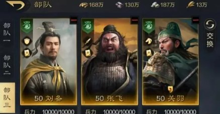 刘备,作为前排、奶定位的武将来说,有着不错的功能性,可以抗可以奶。自带战法“携民渡江”,入战提升14点统率,每回合结束可以恢复己方全体兵力,并驱散己方兵力最低单体1个负面效果并额外恢复该单位的兵力。再搭配上他的金韬略武器,可以适配到各种队伍里,比如说“桃园队”,也可以将关张换成黄忠、黄月英,没有黄月英的则可以用甄洛替代。