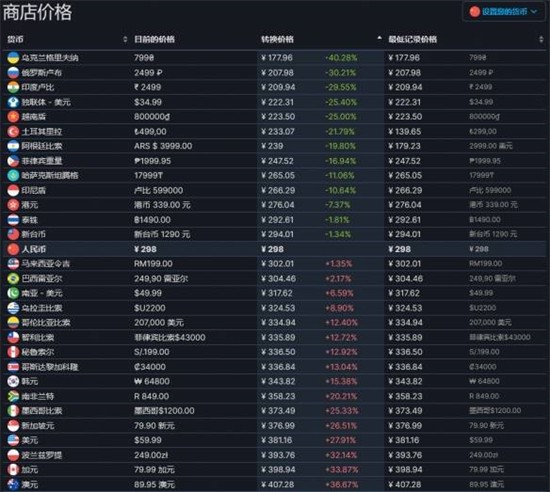 全球各区的价格也提供给大家做个参考,有低价区账号的用户可以尝试在低价区购买。