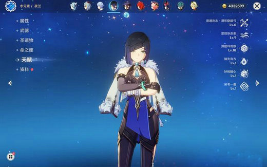 原神夜阑毕业面板属性一览: