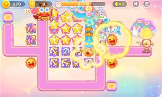 3、所有障碍物都清理掉以后,阵容就基本成型了,下方主要是船锚、上方路线造星星塔,拐角处放太阳花、火箭补位即可。