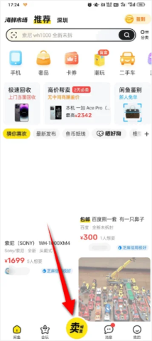 2.打开之后找到并点击【卖闲置】。