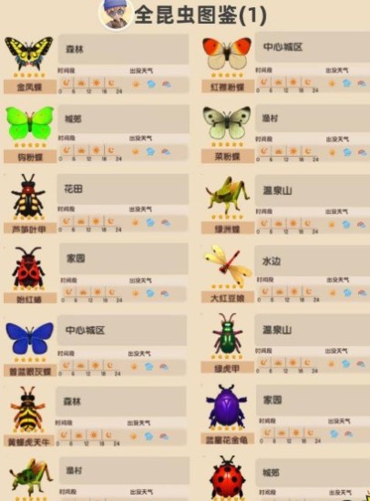 心动小镇昆虫在哪里分布 心动小镇53种昆虫全图鉴分享