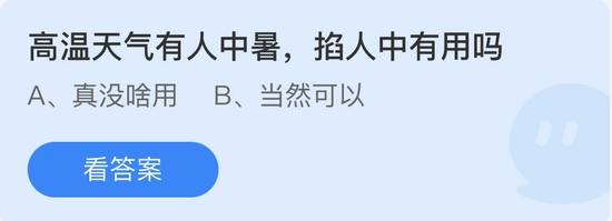 我们每天都能够参加庄园小课堂的答题,为庄园内的小鸡赢取饲料,2022年6月25日庄园小课堂给用户准备的题目是“高温天气有人中暑掐人中有用吗”、“猜一猜家里的小猫小狗能辨认出镜子里的自己吗”,今天正确答案就是“真没啥用”、“不能”,一起打开支付宝答题吧。