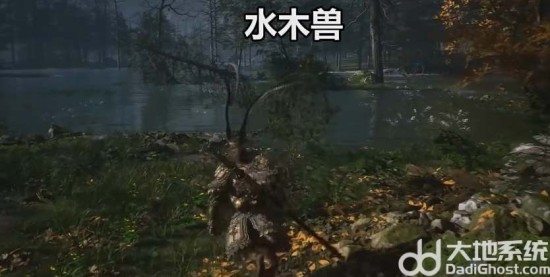 在一个岸边,以弯曲树木为参考点,在前面的水池中间冒泡的地方里触发战斗。