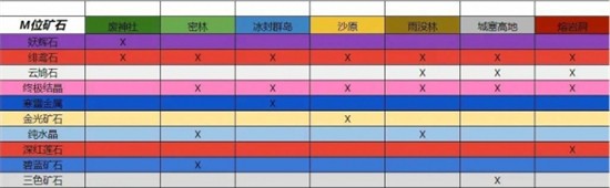 金光矿石:废神社、密林、冰封群岛、雨没林、城塞高地、熔岩洞