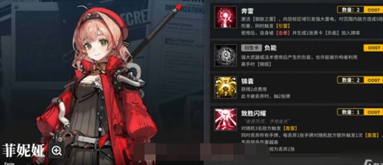2、菲妮娅的大招是弃掉所有手牌打伤害的队长技是雷队的核心输出,配合那由他提供大量黑卡,实战中可以实现无cd轮转的效果。
