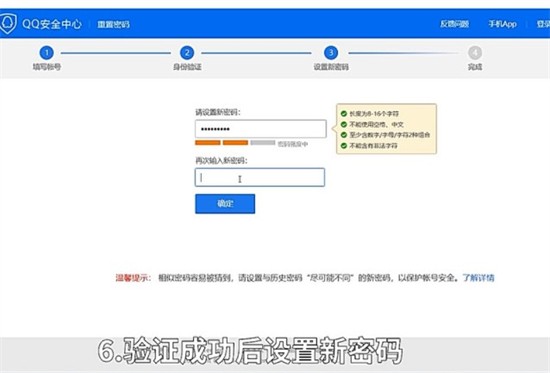 6、验证成功后设置新密码。