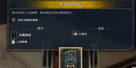 玩家在推进主线任务的时候,会解锁【禁书区的秘密】任务,完成以后就能解锁隐身咒。
