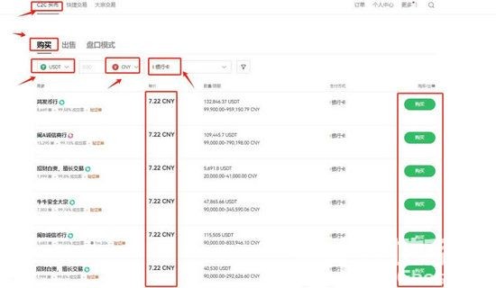 9、进行交易前需要拥有USDT,可在C2C买币进行交易,根据需求选择合适商家,点击“购买”,而后根据提示进行付款、等待商家放币(若是长时间没有收到币种,可联系客服进行处理)