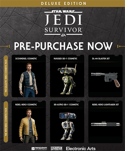 购买《星球大战 绝地:幸存者》豪华版,即可解锁以《星球大战:新希望》中的汉·索罗,及卢克·天行者为设计灵感的专属外观。