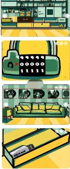 4、再回到壁橱这面墙,点击底下锁住的抽屉,密码为【24120】,打开即可拿到一瓶【白朗姆酒】。