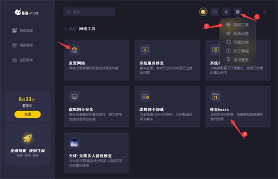 5.进行网络重置或者hosts修复,可能是host以及代理设置影响。