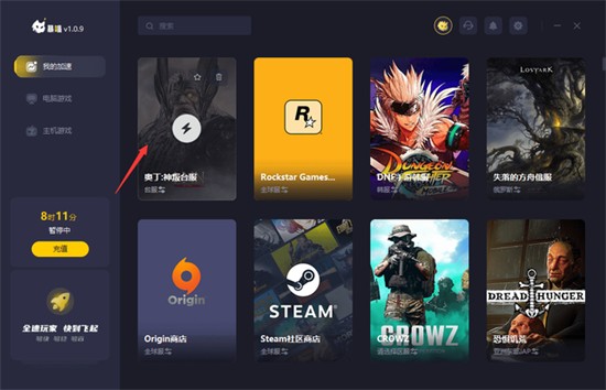 2.使用暴喵加速器来协助我们改善网络环境,打开暴喵搜索奥丁神叛台服进行一键加速。
