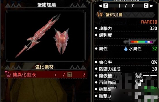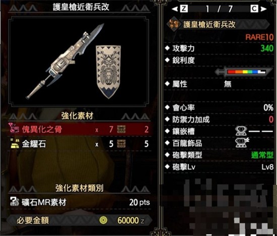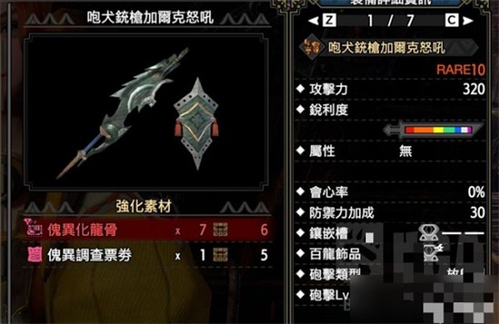 大名盾蟹的铳枪,通常形8,320面板自带短白,送30防御,1个2级孔,1个3级百龙孔