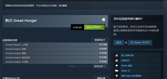 可以看到在Steam国区里,恐惧饥饿的售价是90元,这个价格在这类游戏中算中规中矩,不会太夸张,不过还是有很多玩家觉得这样的价格应该再低一些。