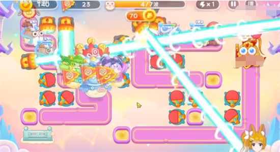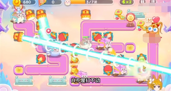 3、第四波之前做到道具全清是比较简单的,第一个来的是合体神仙,玩家要沿着路线放球拍,可以直接锁头打,建议放一倍数,不然很容易错过兔子;