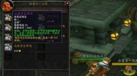 会骑术之后,在旁边的NPC那里就可以购买阵营飞行坐骑,小鸟为100金币,大鸟为200金币。由于骑术等级是无法跳过的,所以想要获得280%的移动速度,必须花费5800金币,再加上坐骑,一共需要花费6000金币。