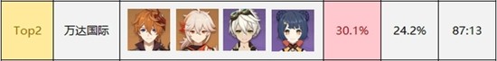 这支队伍要伤害有伤害,要聚怪有聚怪,要有奶量有奶量,还能把怪冻起来随便打,说玩起来真的非常舒适和安逸,谁用谁知道。55.8%的使用率意味着持有这支队伍的玩家大部分都会去使用这支队伍打深渊,因此在本期神鹤万心在使用率依旧排在本期的第一。